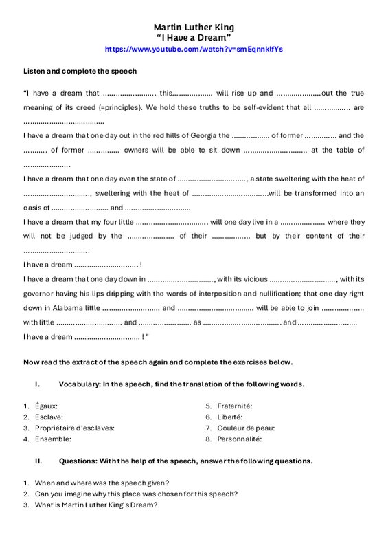 Martin Luther King Genially Worksheet